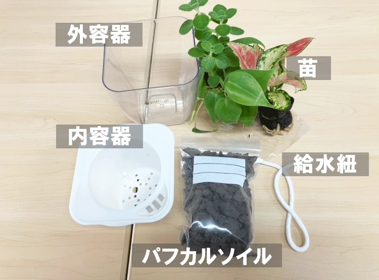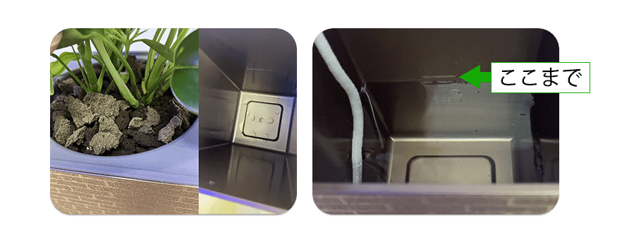 1・パフカルチップがところどころ白っぽく乾燥していたり、外容器に水がなくなりかけていたら給水のタイミングです。