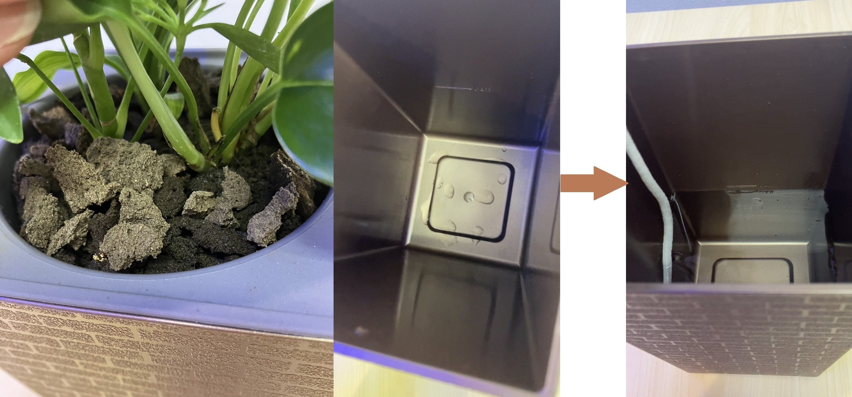 パフカルチップがところどころ乾燥白っぽく乾燥していたり、外容器に水がなくなりかけていたら給水のタイミングです。