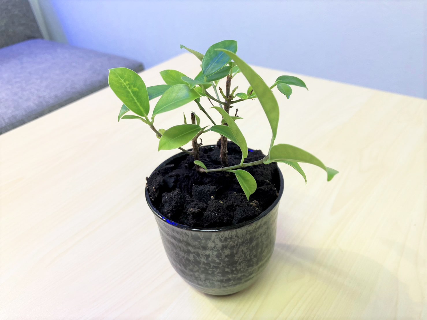 お手持ちの好きな容器にパフカルチップと苗を移し替え、オリジナルで楽しむこともできます。