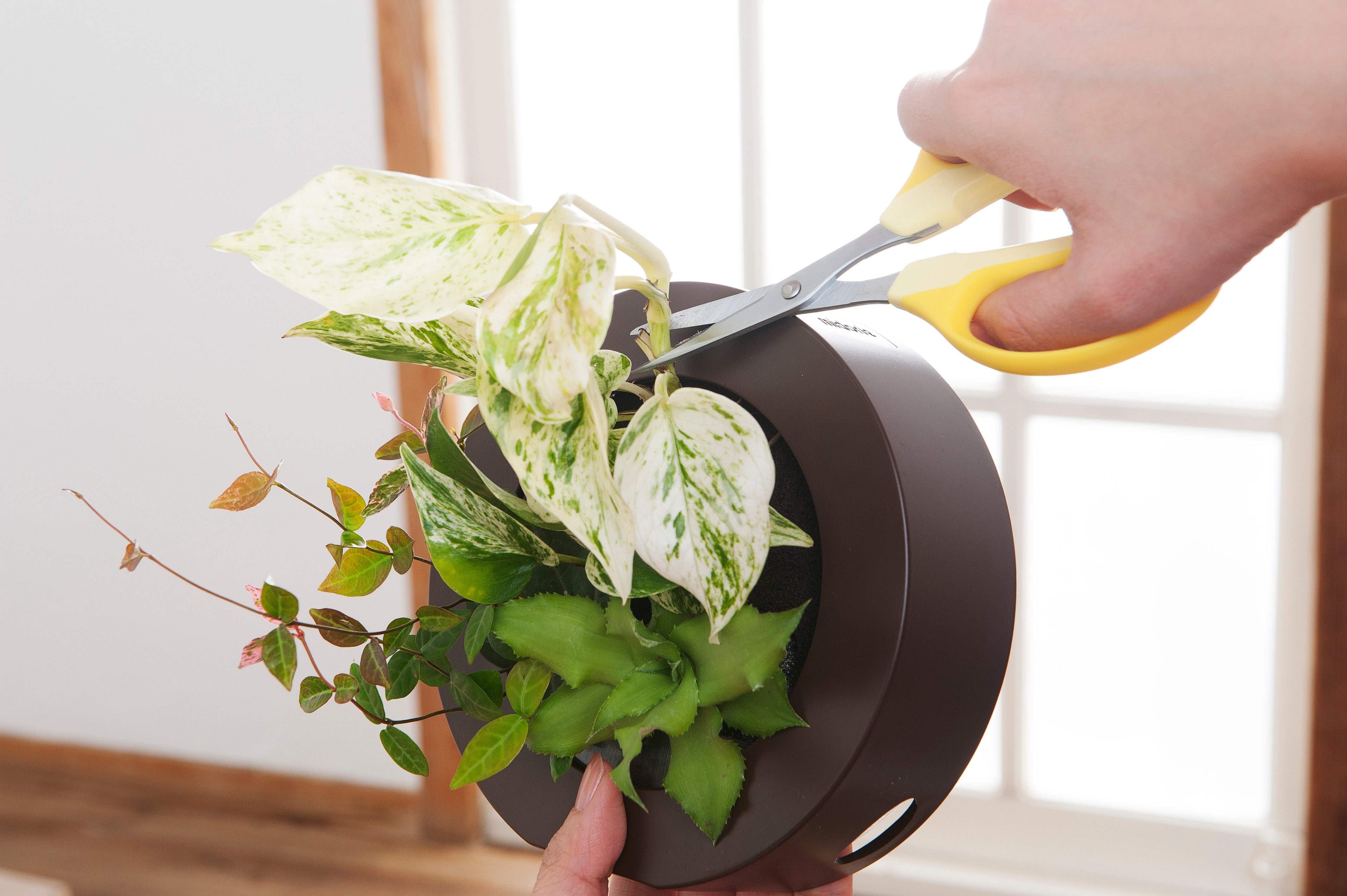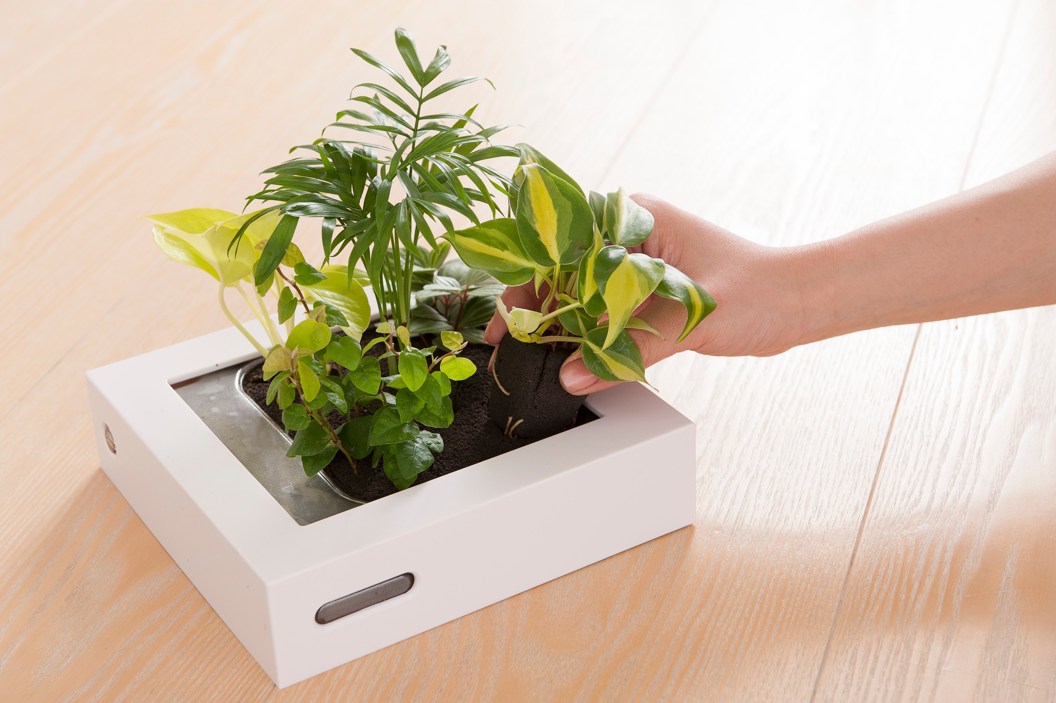 ミドリエデザインは土に代わる新素材「パフカル」が水と空気を植物にバランス良く供給するので、初めて育てる方でも手軽に育てることができます。